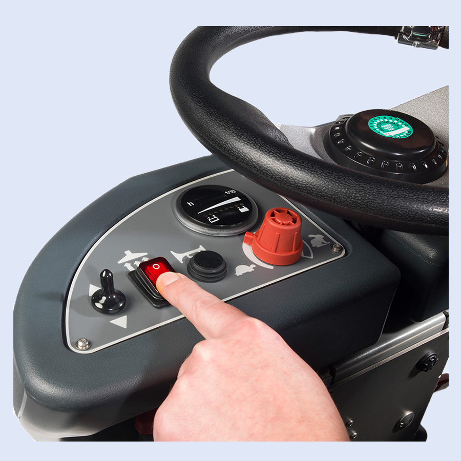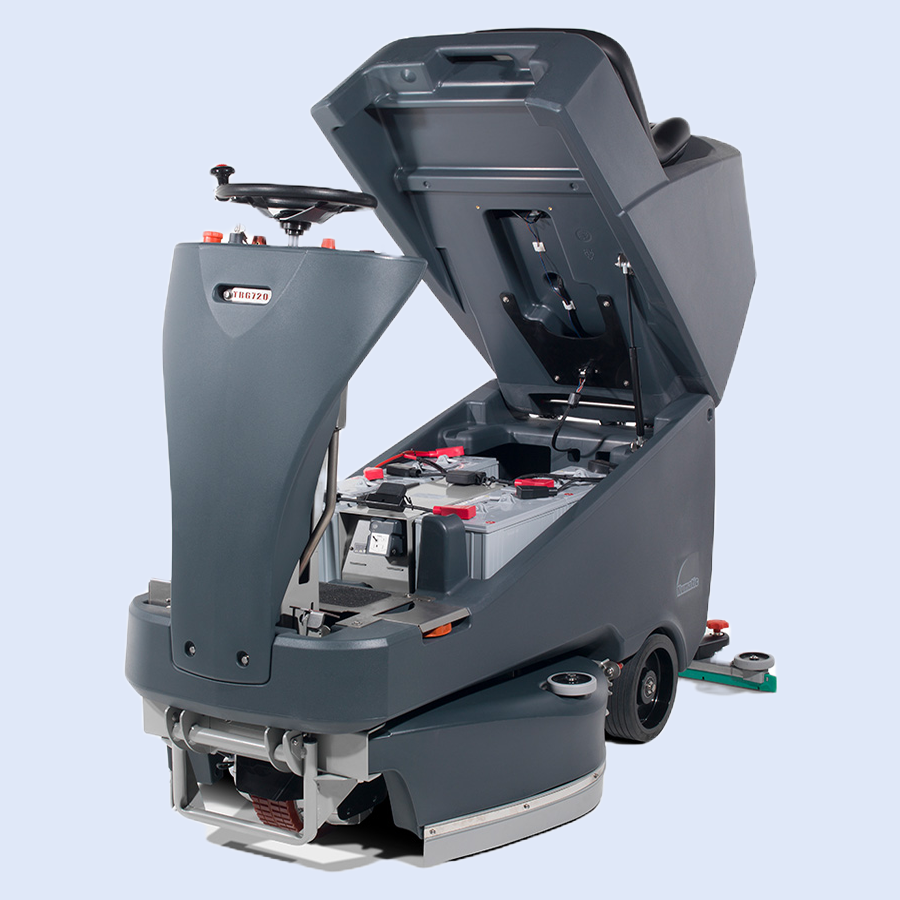 Safety features include emergency stop button, power off removable key and hazard warning light, just to name a few. Fully adjustable water flow rate gives the user more control when cleaning. Other features include ground strip to prevent static build-up, 720mm twin brush power head cleaning system and 140A traction controller for enhanced traction.