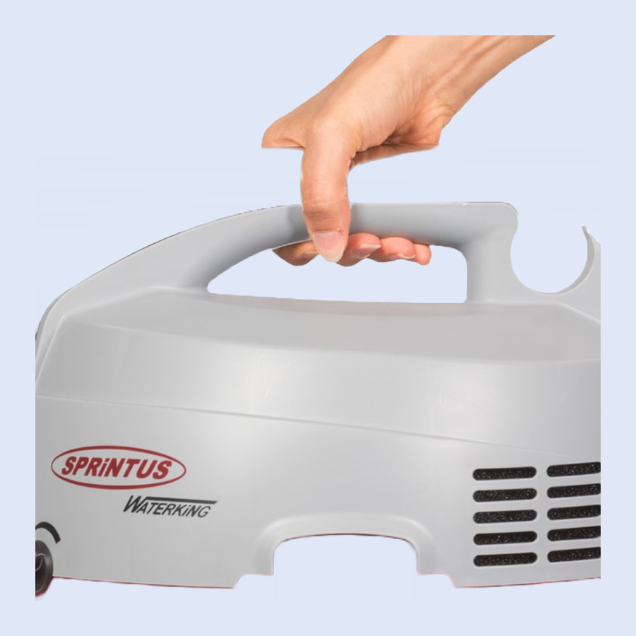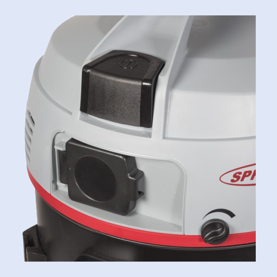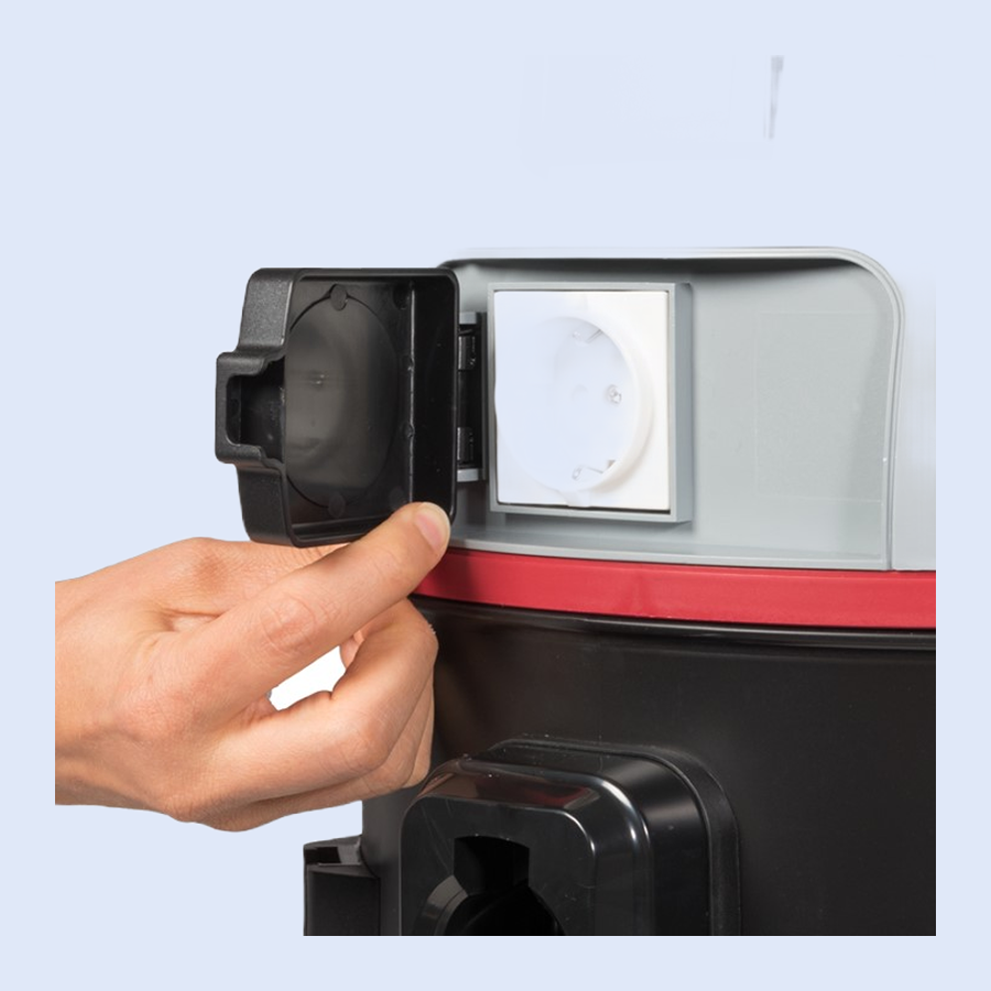 Of the 30 litres-class vacuums, the “Waterking” is the bestsuited for cleaning facilities. Extremely high performance (260 mbar suction power at 70 L/Sec). Used in combination with the 360 mm wide floor nozzle, the “Waterking” displays outstanding performance on a range of surfaces. Thanks to the mechanical output regulator, suction power can be adapted to any kind of flooring. With the integrated blower function, filters and work benches can be blown clean, or wet surfaces can be blown dry. On-device storage for the hose, power cord and accessories, as well as a parking position for the tube and an ergonomic handle, ensure optimal handling and make the “Waterking” fit for professional use. A high-performance power socket located on the head allows for the use of further cleaning machines directly through the vacuum.
